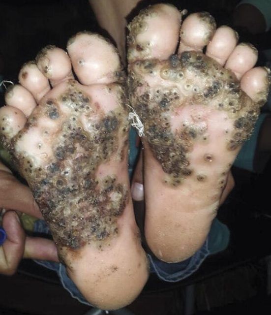 Luego de 10 días de padecer un calvario, los padres de la joven decidieron llevarla a una clínica de atención primaria. Además del dolor, los puntos de la piel le generaban mucha picazón en las plantas y en los dedos. Los profesionales de inmediato le retiraron una gran cantidad de insectos. Y los huevos que habían puesto las pulgas en cada una de las ampollas. Luego de atenderla le diagnosticaron “tungiasis”.
