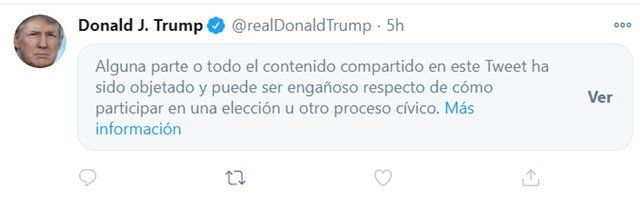Esto no es la primera vez que ocurre ya había pasado en los últimos días con dos mensajes en los que el presidente ponía en duda el voto por correo. En uno de ellos calificaba de "peligrosa" la decisión de los tribunales de permitir en Pensilvania el recuento de votos que hayan llegado hasta tres días después del 3 de noviembre porque llevaría a fraude y violencia callejera. En ambos recibió el mismo mensaje de advertencia.