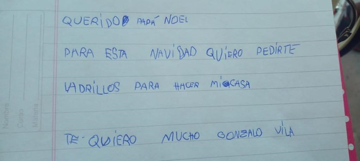 Conmovido por su situación, Gonzalo escribe una carta a Papá Noel pidiendo ladrillos para reconstruir su hogar. La imagen de Gonzalo con su carta se viraliza, llegando a estudiantes de Villa Devoto School en Buenos Aires, quienes deciden actuar.