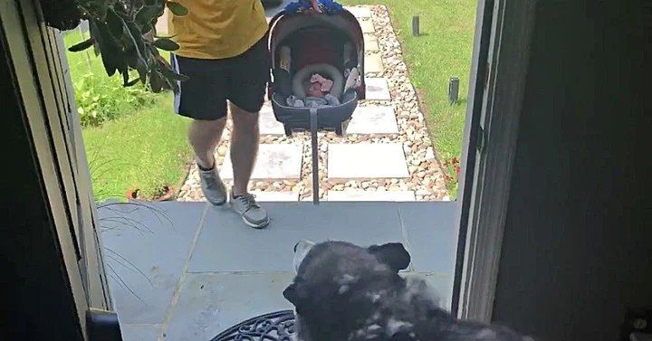 En las imágenes que se hicieron virales en las redes sociales se ve al perro arrimándose al papá, para darle la bienvenida y luego sí, el saludo oficial al nuevo bebé con un aullido de que pareciera ser un: "¡Bienvenido a casa!".