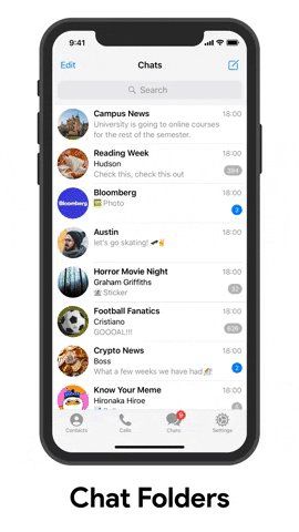 Telegram agregó Carpetas de chat. Si tenés demasiados chats, ahora podés separar el trabajo o las cosas de la familia de las de la escuela, y luego deslizarte entre las pestañas para acceder rápidamente a cualquiera de estas categorías.