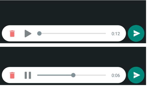 Grabá el mensaje y cerrá la conversación ya sea cerrando la aplicación o solo saliendo de la conversación, volvé a abrirla y verás que en la parte inferior donde escribirías el mensaje aparecerá la nota lista para ser escuchada para que puedas decidir con tranquilidad y a consciencia si querés mandarla o eliminarla.