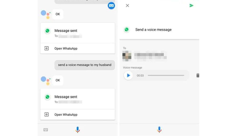 Tras ello solo dile: “Mandar mensaje de WhatsApp a… (nombre de la persona)” Acto seguido Google seleccionará el contacto y nos pedirá que le digamos el contenido del mensaje.