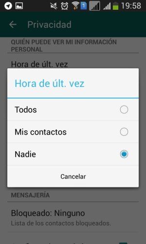 Para que nadie pueda cotillear cuándo ha sido la última vez que has mirado la aplicación antes de irte a la cama, sigue los siguientes pasos tanto en Android como en iOS para iPhone: introdúcete en el menú de WhatsApp, selecciona "ajustes">"cuenta">"privacidad">"hora de últ. vez". En ese menú puede escogerse quién puede ver la hora de conexión, si todo el mundo (incluso personas que no estén en tu agenda pero tengan tu número de teléfono), solo tus contactos o nadie. Al escoger nadie, tú tampoco podrás ver la hora de conexión de tus contactos.