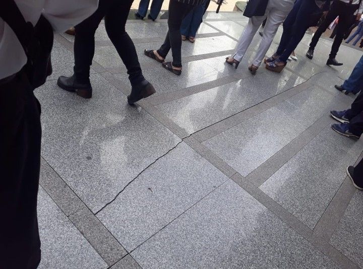 El edificio del Servicio Penitenciario Bonaerense, en La Plata, fue evacuado por precaución. Las consecuencias del temblor: una rajadura en el hall de acceso.