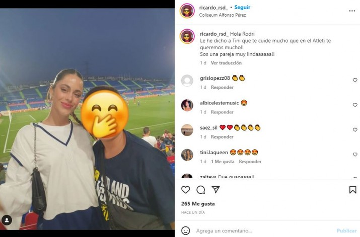 "Hola Rodri. Le he dicho a Tini que te cuide mucho, que en el Atleti te queremos mucho. Son una pareja muy linda", escribió al aficionado del colchonero. Su publicación logró un gran alcance y de seguro, al jugador le puede haber llegado el mensaje.