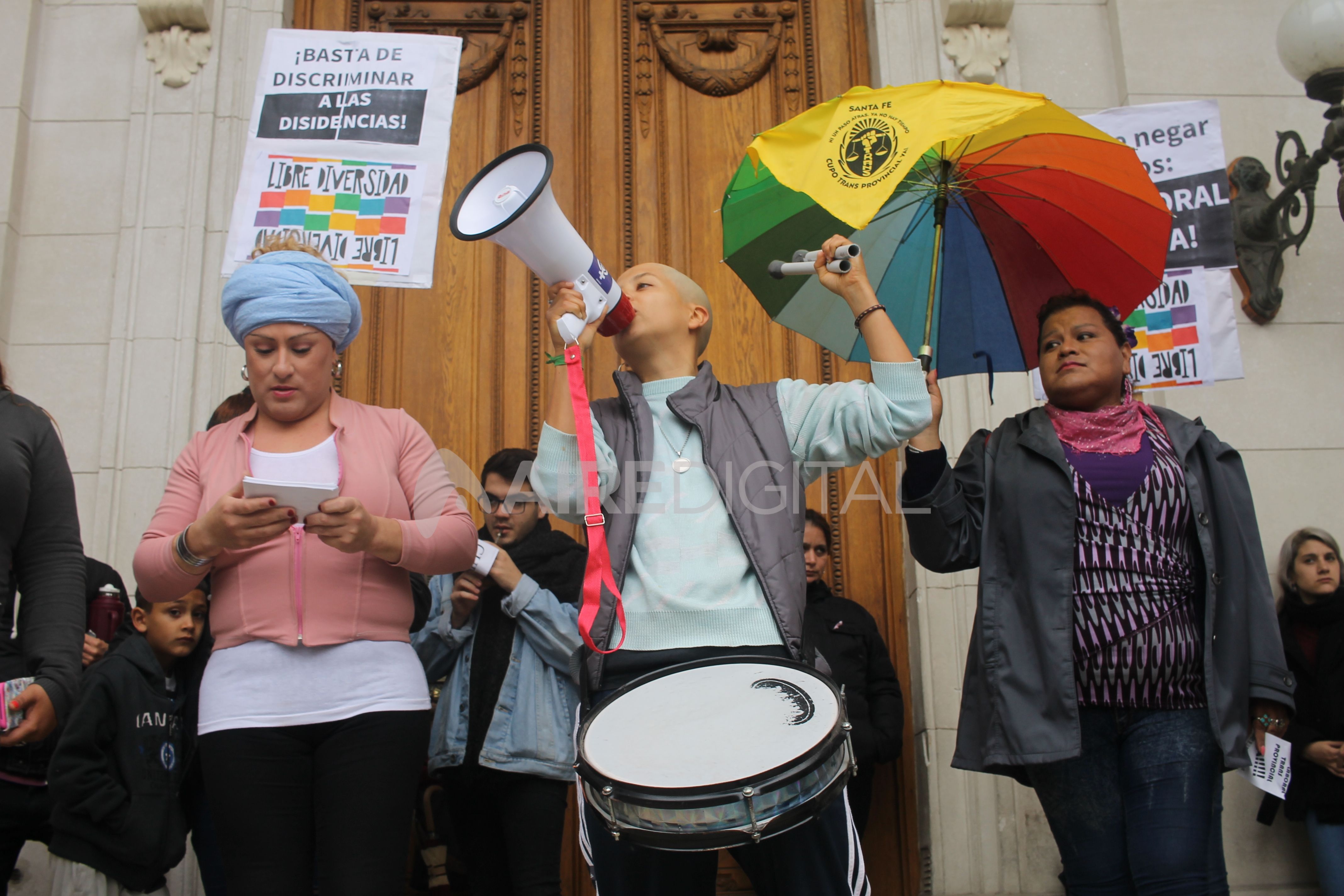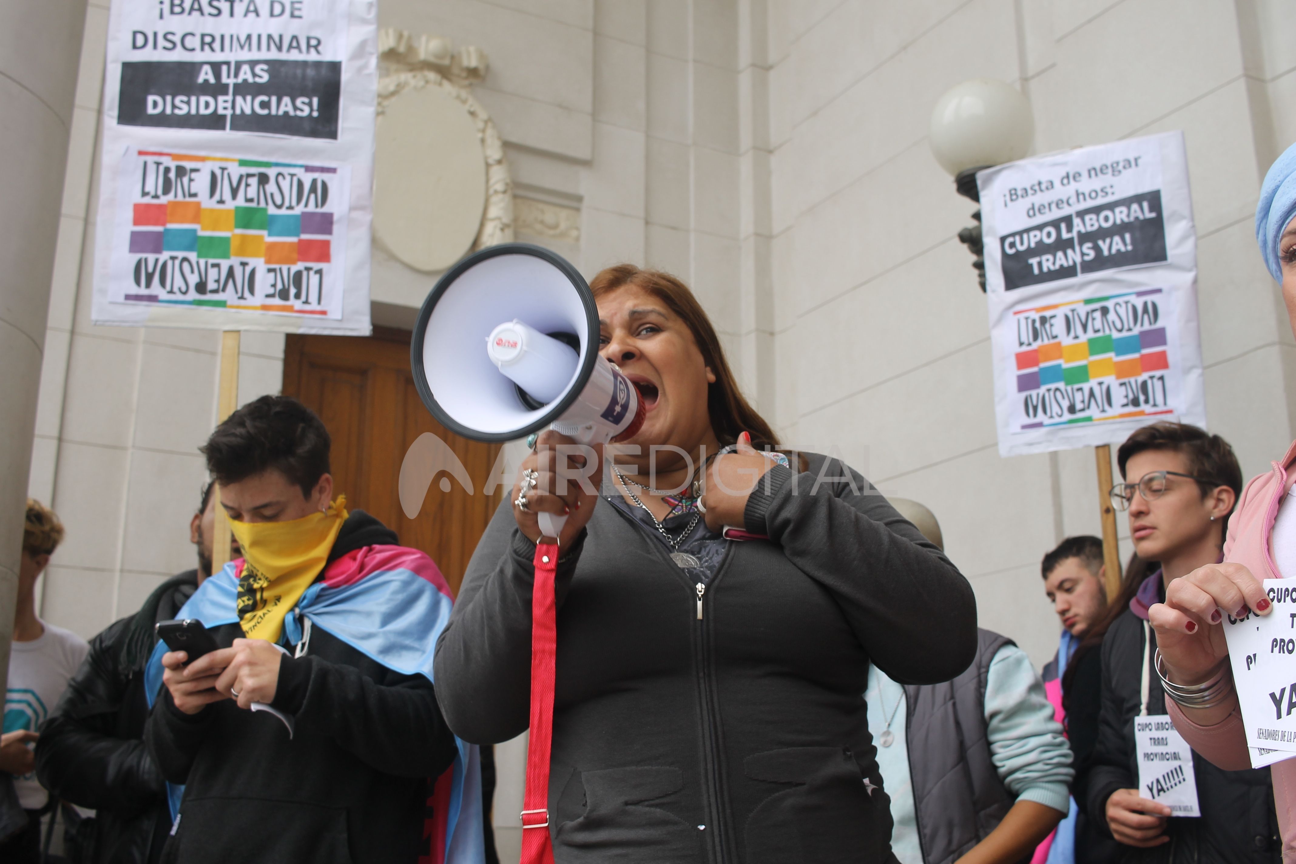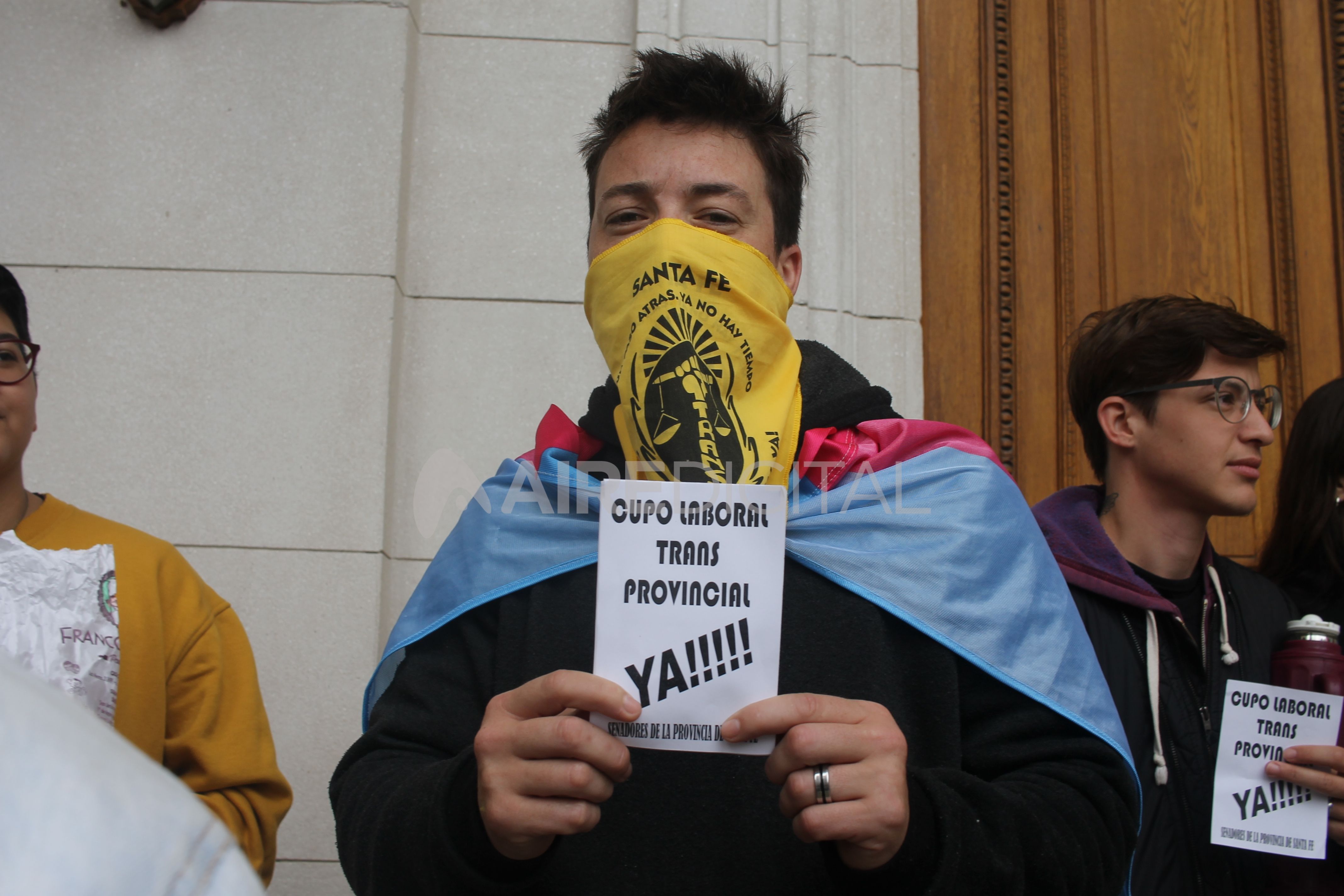 “Señor, señora, no sea indiferente. Se matan a travestis en la cara de la gente”, gritan por megáfono en la entrada de la Legislatura de Santa Fe. Una pareja entra al edificio y una de las manifestantes le explica: “tienen que acompañarnos, porque las personas trans no tenemos las mismas posibilidades laborales que usted y su marido”. Están allí porque el tiempo corre en contra: después del 30 de noviembre el proyecto de Ley de Cupo Laboral Trans provincial perdería estado parlamentario.