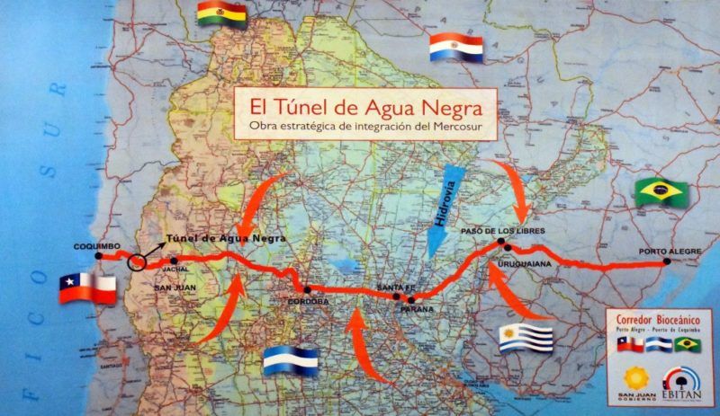 Todos estos son corredores bioceánicos porque conectan los dos océanos. Son corredores de ingreso y salida de mercadería y de servicios que se producen entre Brasil, Argentina y Chile y el Túnel de Agua Negra llegará para contribuir a la mejora de todos estos flujos de transporte. Pero la megaobra tendrá su importante costo.