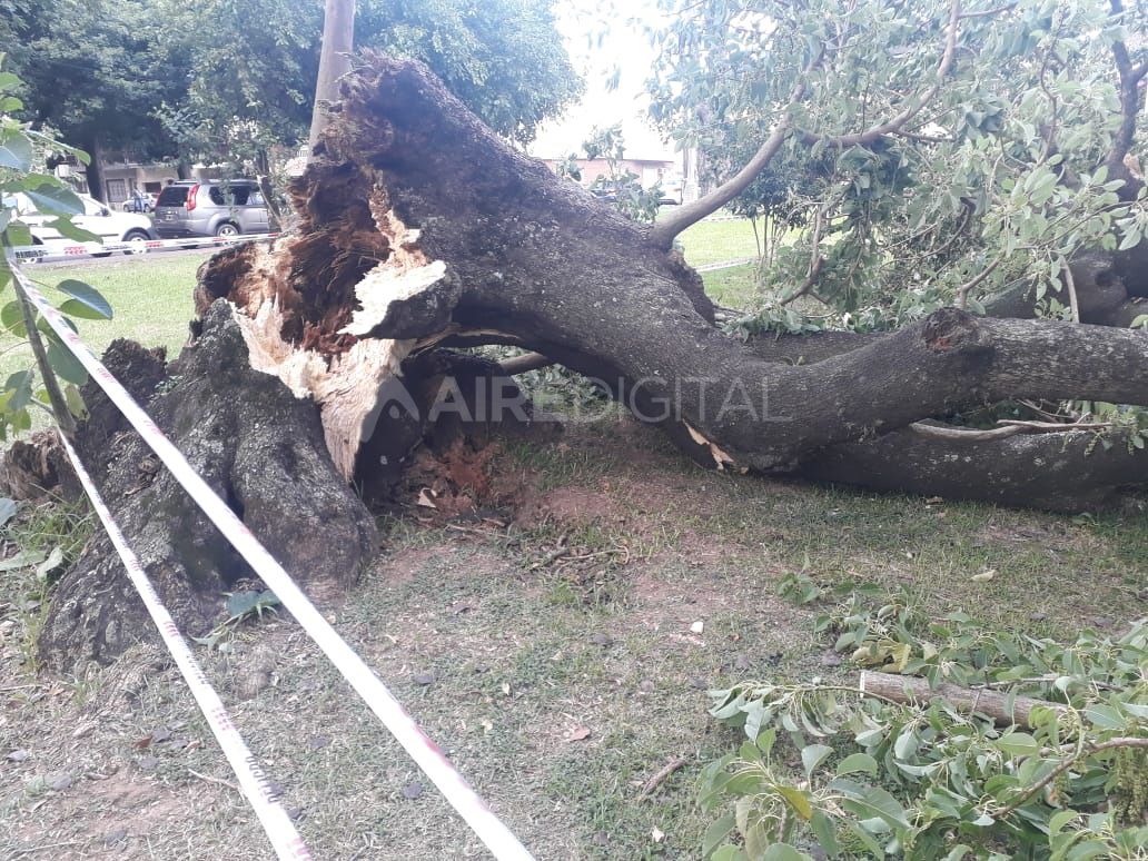 Un árbol de grandes dimensiones cayó sobre varias personas en el Parque del Sur durante la tarde de este martes. El hecho ocurrió minutos antes de las 20 y dejó cuatro individuos con heridas de diversa consideración.