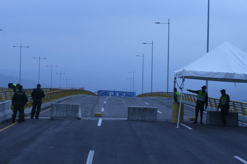 Desde el ingreso al puente al escenario hay unos 1500 metros por una ruta que está impecable, debido a que no tiene uso. Ese puente nunca se puso en funcionamiento, a pesar de que lo financió el chavismo, luego de que las tensiones en la región aumentaran.