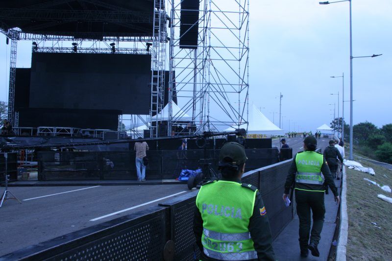 El público fue ubicado en ese predio al costado del puente, en un campo que se preparó para el recital, porque -según confiaron los organizadores- quieren evitar que la gente intente pasar al lado venezolano. El escenario que está sobre el puente Tienditas lo impide.