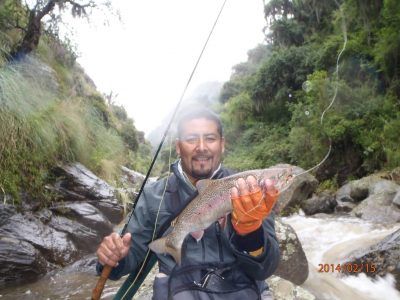 Nuestro guía aconseja el uso de moscas lastradas lanzando a la caída de agua para que ingrese al pozo con naturalidad. Según nos indicó, las más productivas son las Pheasant Tail, Hare´s Ear o Cooper John en anzuelos #14 o #16.