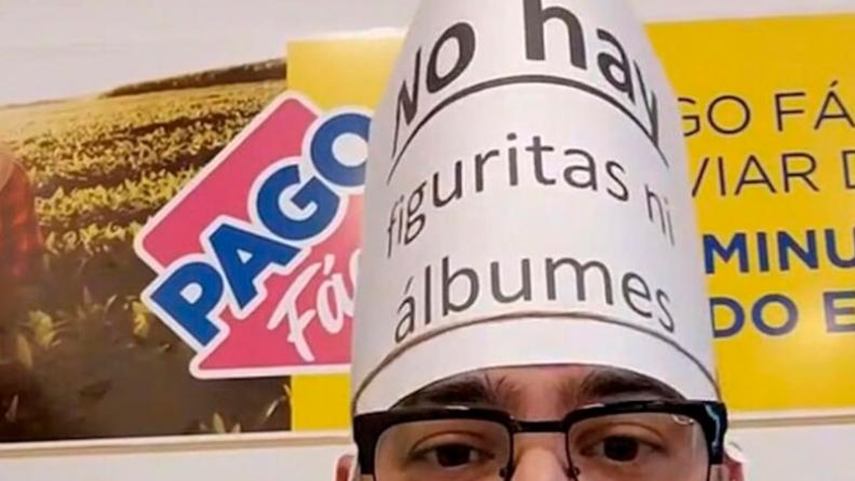 Un kiosquero estaba tan cansado de que nadie leyera el cartel de su local que decidió ponérselo de sombrero y atender así su negocio. De ese modo, busca evitar que las personas le pregunten hasta el hartazgo si tiene figuritas del mundial. El cartel lo expresa claramente: “No hay figuritas ni álbumes”.