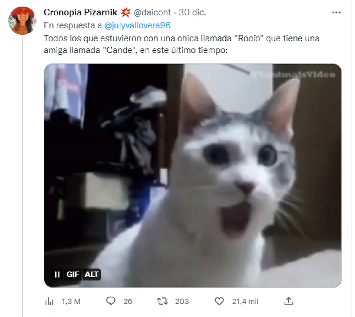 Por otro lado, algunos aprovecharon el momento para hacer bromas al respecto e hicieron reír a todos en las redes. “Todos los que estuvieron con una chica llamada 'Rocío' que tiene una amiga llamada 'Cande', en este último tiempo”, bromeó una usuaria, junto a una postal de un perro con cara de asustado, recolectando un sin fin de reacciones.