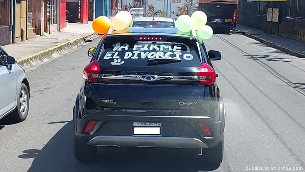 Sucedió el sábado pasado en Cartago, Costa Rica. Su historia se hizo conocida porque la foto de su auto con la inscripción “Ya firmé el divorcio” en la ventanilla trasera se hizo viral en redes.