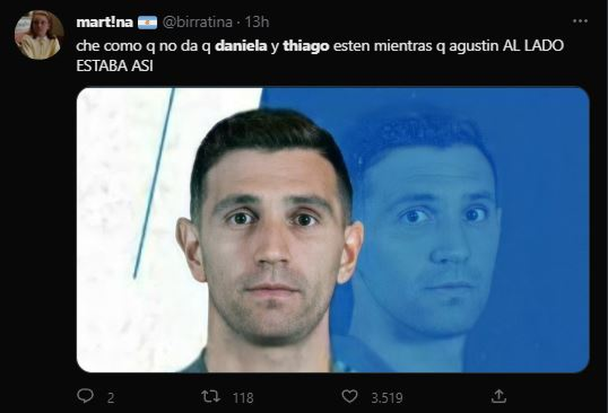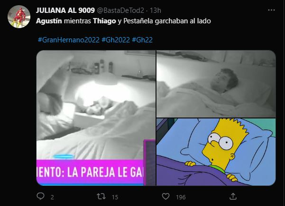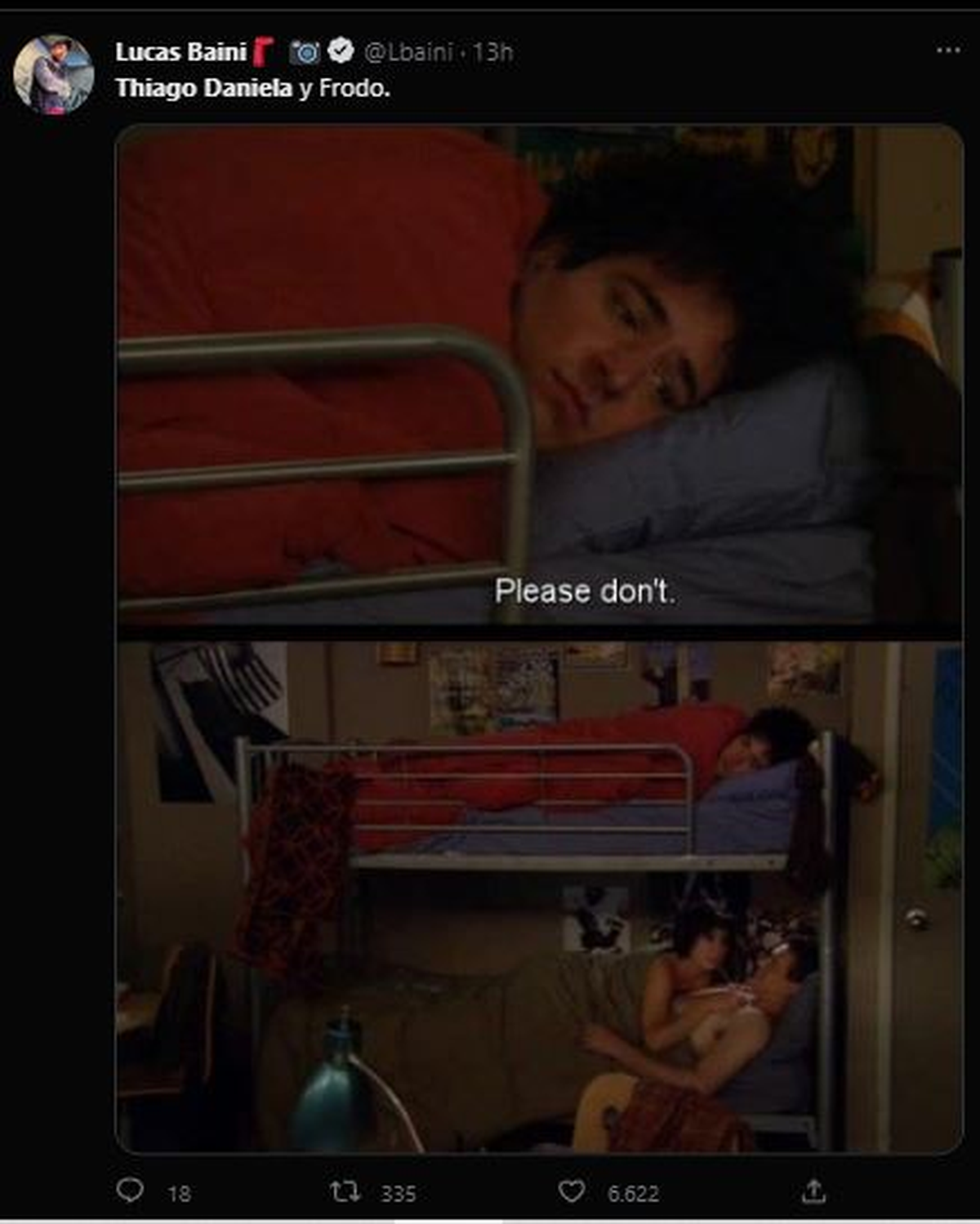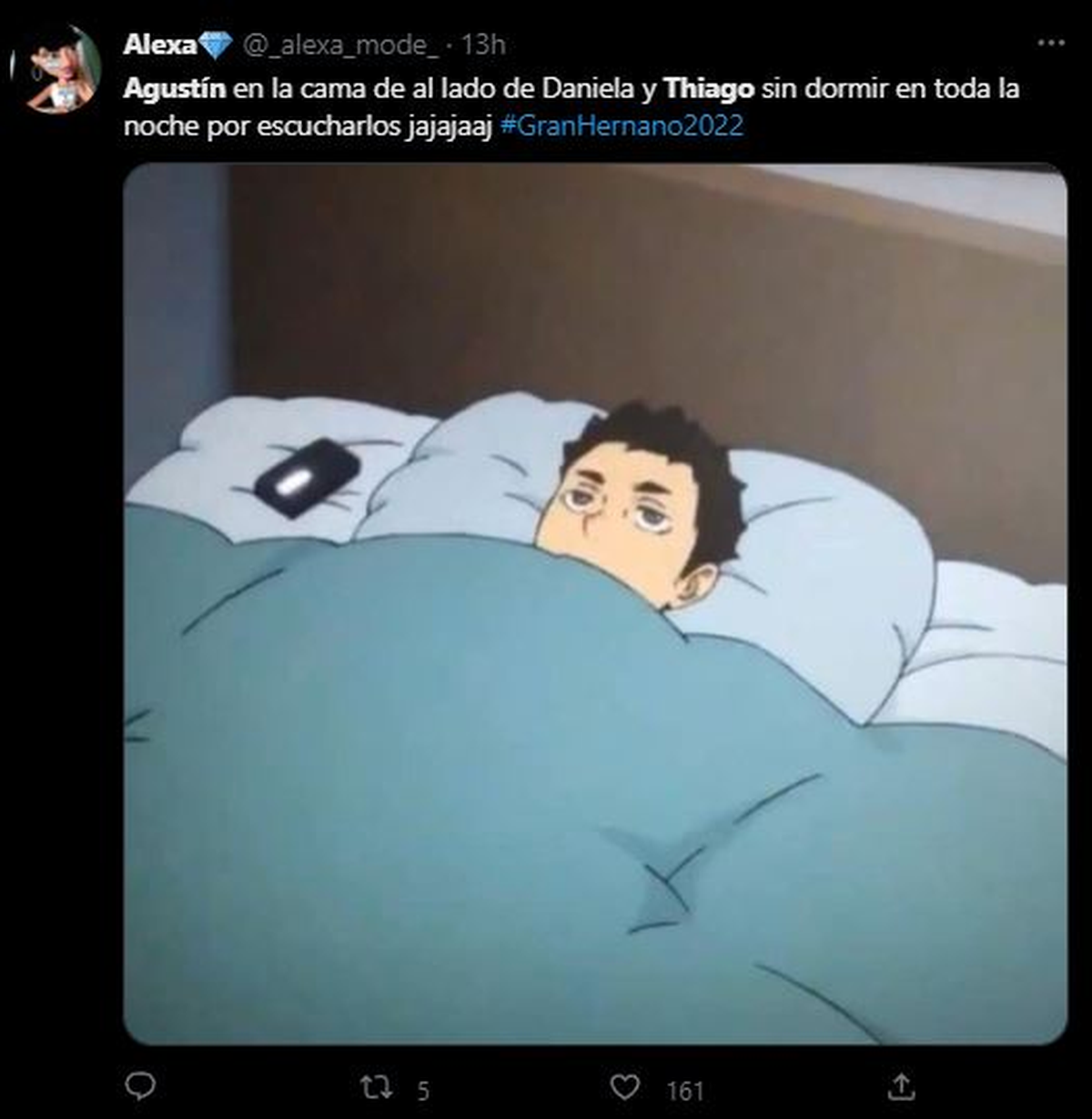 Entre las imágenes que se conocieron previas al fogoso momento que compartieron, mostraron a Agustín en la cama contigua a donde los chicos manifestaron su amor. No pasó mucho tiempo para que su rostro se transformara en cientos de memes.