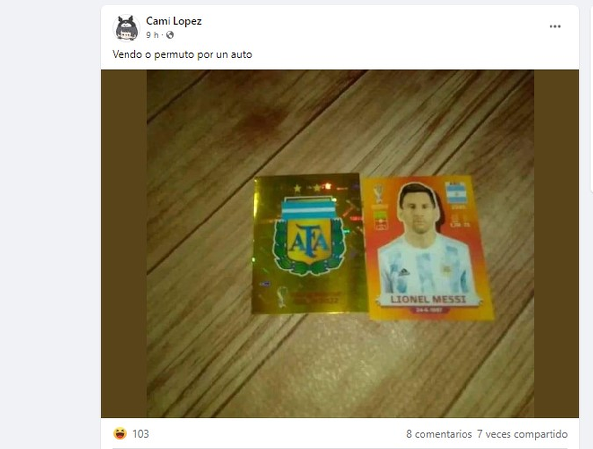 En Jujuy, a una joven le tocó la tan buscada figurita de Lionel Messi y decidió salir a venderla en los grupos de Facebook. Lo llamativo es cuanto pide por la misma,"vendo o permuto por una casa"puso y lo que enojó a otros usuarios por tan pretensiosa oferta. Sin embargo, a tono de broma, un jujeño llegó a "ofrecer" un fiat 600 y otro un terrenito con tal de obtener la figurita.