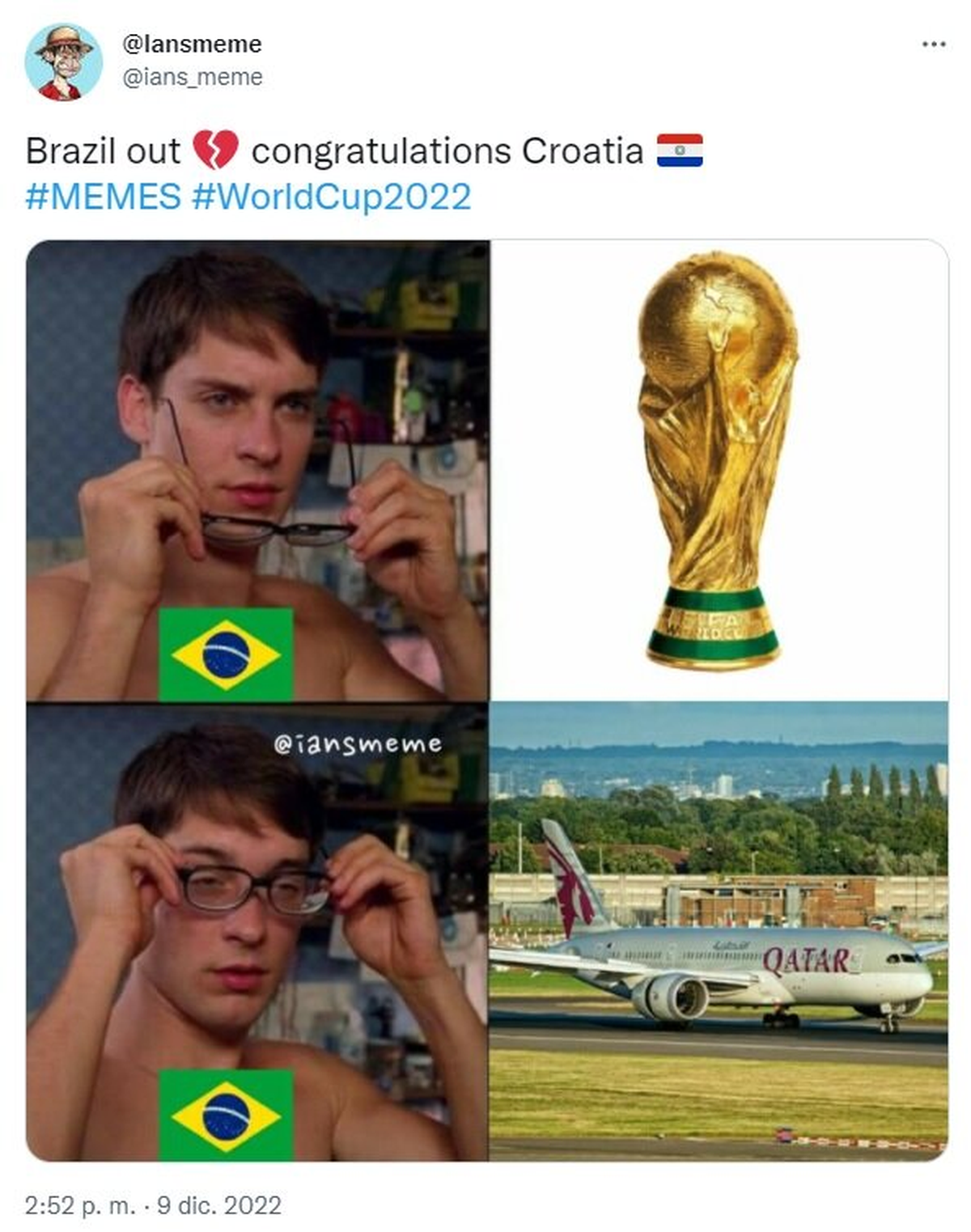 La expectativa de los brasileños era alta: estaba en juego el pase a las semifinales y la posibilidad de sumar la sexta estrella en su escudo. La "hexa", como anticipaban en el país de la caipirinha. Pero no pudo ser y luego de la emocionante victoria de Croacia por penales, las redes sociales empezaron a jugar su propio partido a pura bromas y memes por la salida de Brasil en cuartos de final.